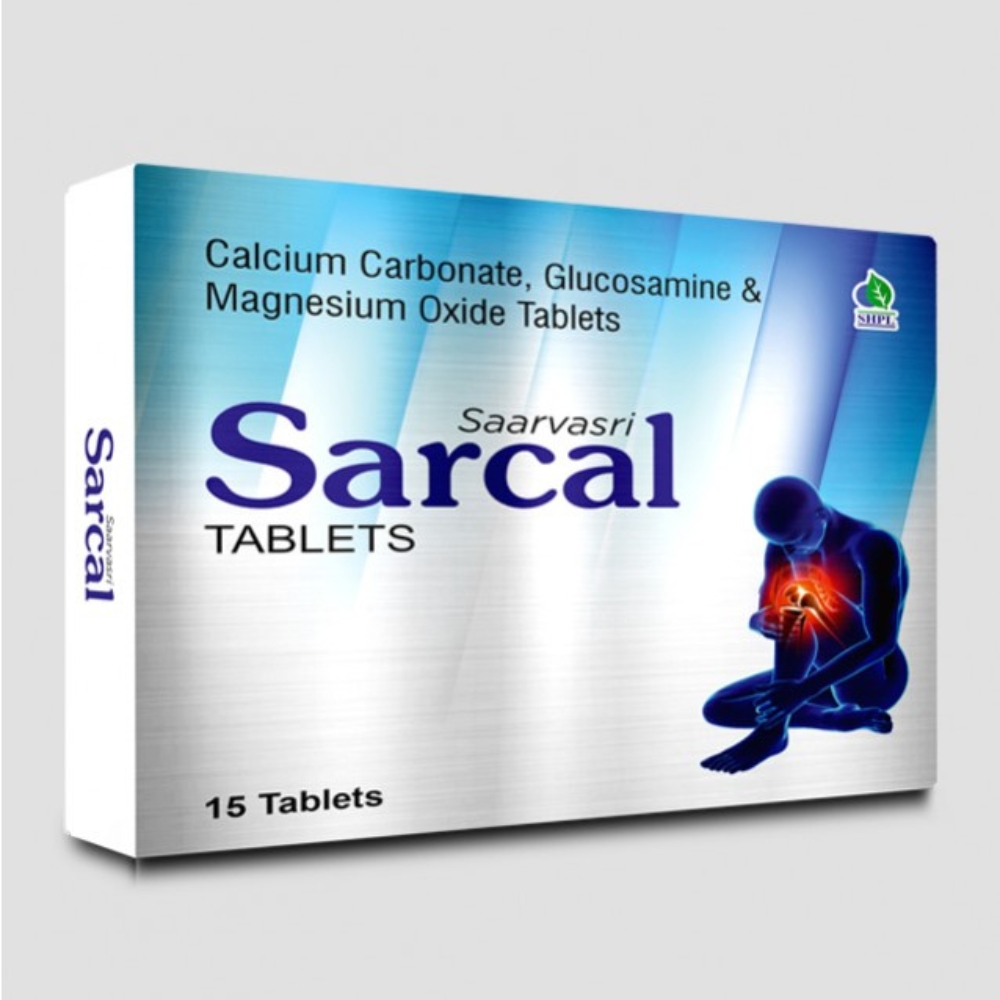 Description: The Saarvasri Sarcal Tablet is intended for individuals whose diets do not provide enough calcium to prevent or treat low blood calcium levels. A vital role for calcium exists in the body. It is required for the nerves, cells, muscles, and bones to function normally. The body will take calcium from bones if there is not enough calcium in the blood, weakening the bones in the process. Synovial fluid between bone joints and healthy joints are maintained by glucosamine.